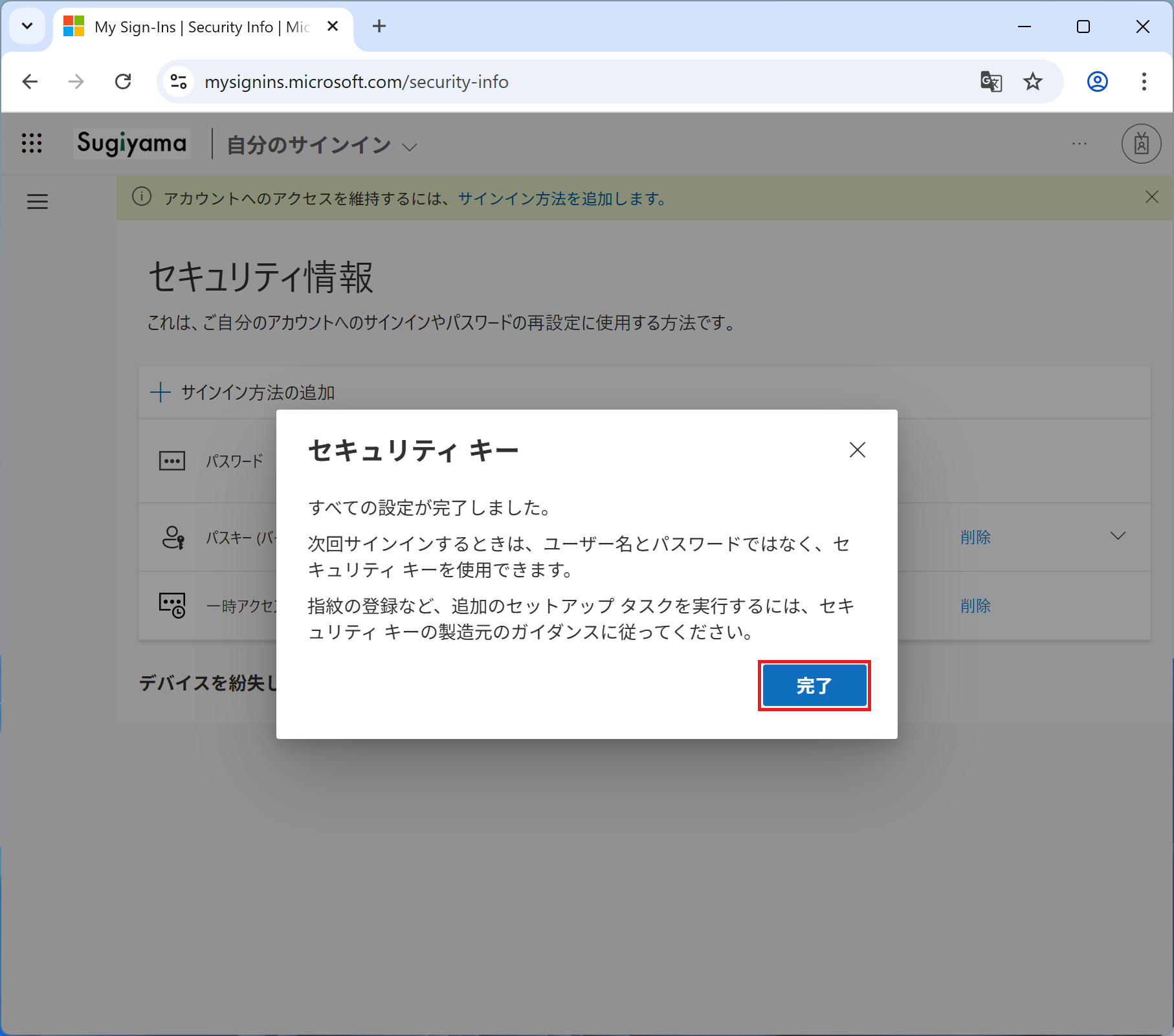 操作: ブラウザで、セキュリティ情報ページ(https://aka.ms/mysecurityinfo) にアクセス