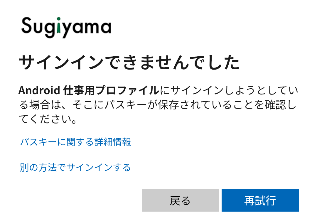 他に有効な認証手段が無い場合、利用者自身で Entra ID にサインインすることはできません。